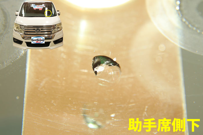 今日のガラスリペアのご紹介は、ホンダ・ステップワゴンの助手席側下部に出来たひび割れの修理です。
