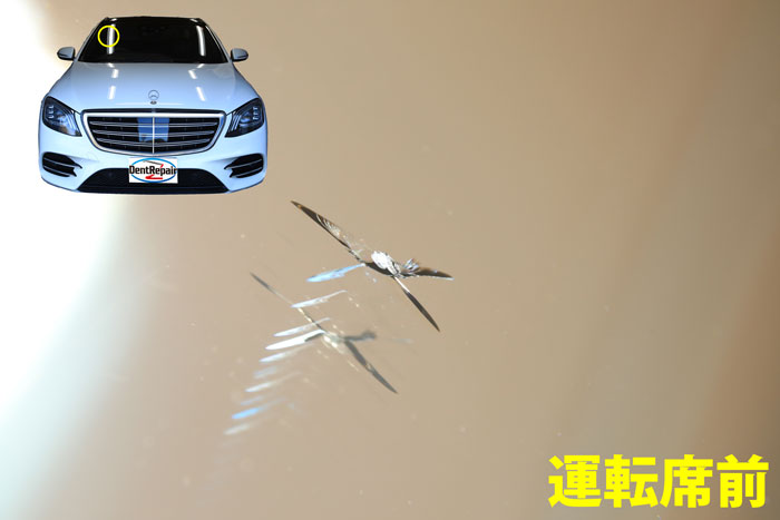 今日は、ベンツ・S400dのオーナー様にご来店いただきました。昨晩飛び石を被弾してしまいひび割れが出来てしまいました。